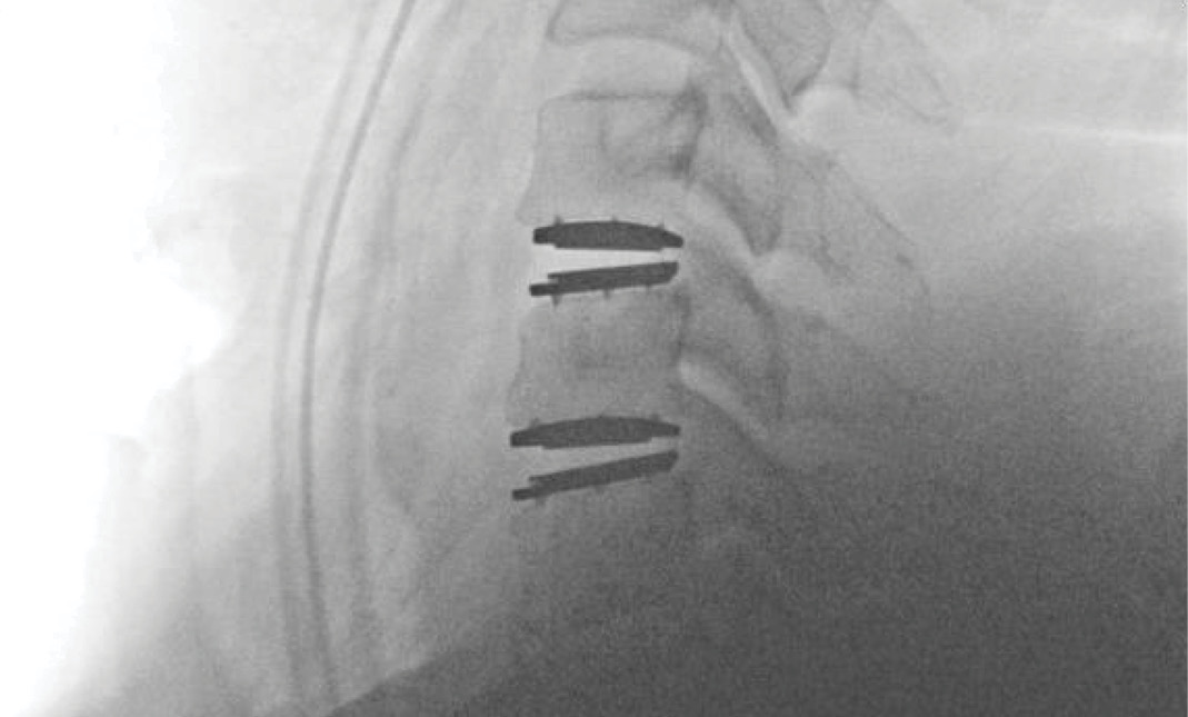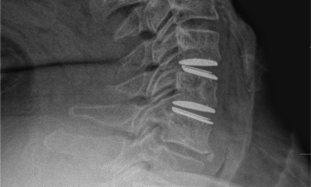 Upon examination, the patient had good motion on flexion-extension, so fusion was not considered at all. My operative plan was to use prodisc cervical devices and replace both discs at C4-5 and C5-6, giving me the flexibility to use either a domed or flat implant.