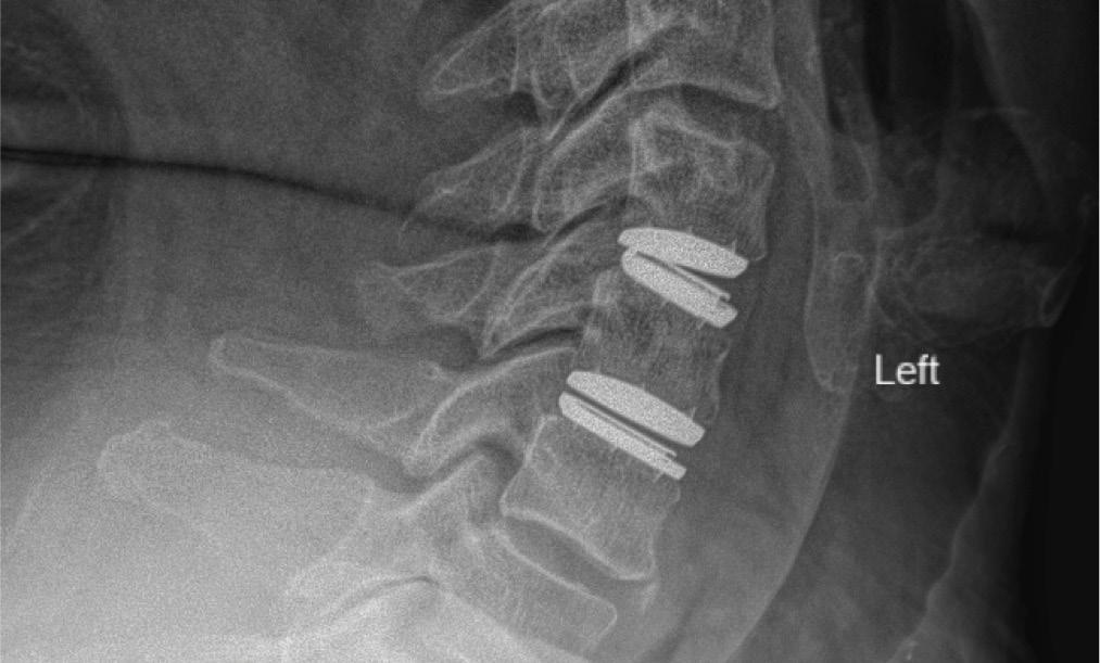 Upon examination, the patient had good motion on flexion-extension, so fusion was not considered at all. My operative plan was to use prodisc cervical devices and replace both discs at C4-5 and C5-6, giving me the flexibility to use either a domed or flat implant.