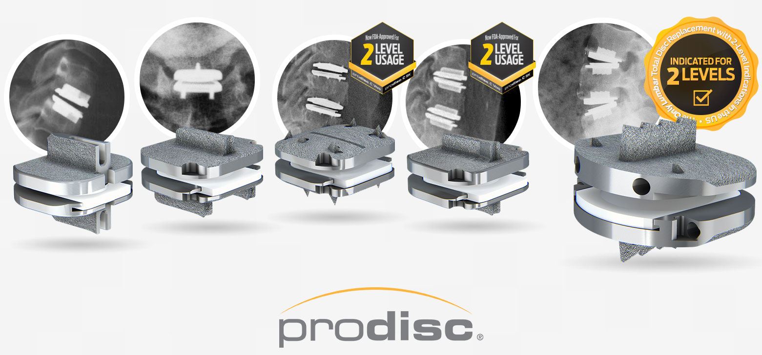 * prodisc C Vivo, prodisc C SK, & prodisc L are FDA-approved for both 1- and 2-level usage. prodisc C & prodisc C Nova are FDA-approved for 1-level usage only.